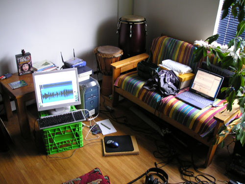 Beat it up. A computer setup by music lover. Linksys wireless router provide the network capability. Smooth and easy does it all. Playing the right way. Sharing the music..