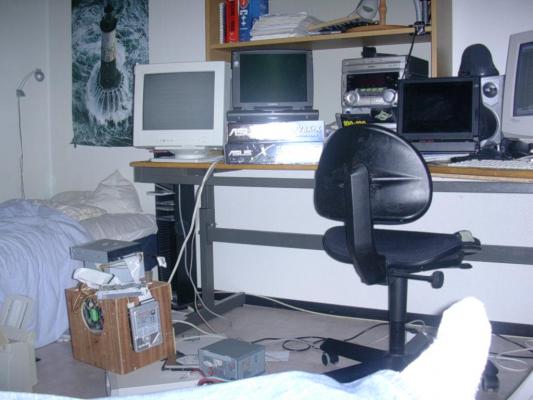Home den to learn hacking tricks. Hacking as said never hurts. Wooden power box with exhaust. Sleep 'n work .. rock n roll...