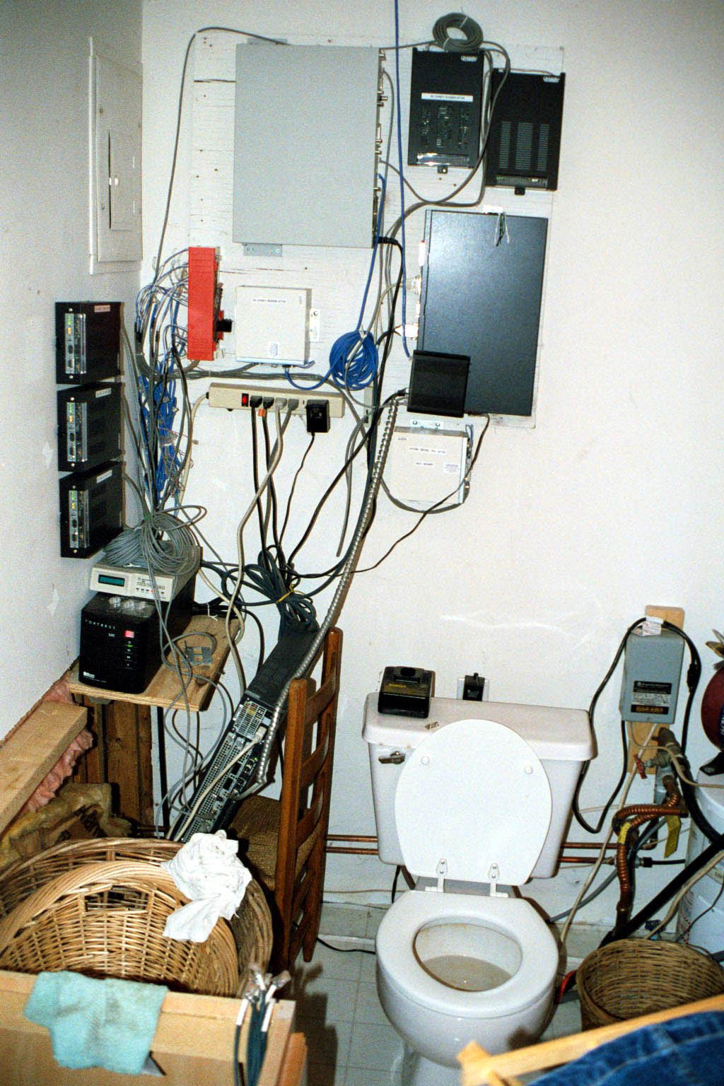 Now dont dare to say "sh*t with this server". Can you go more freakky than this home bathroom server setup??? I guess you never cant. A real end to mark of laziness, computer freakkism n wase of space. Take your admin chair.. start serving!!!